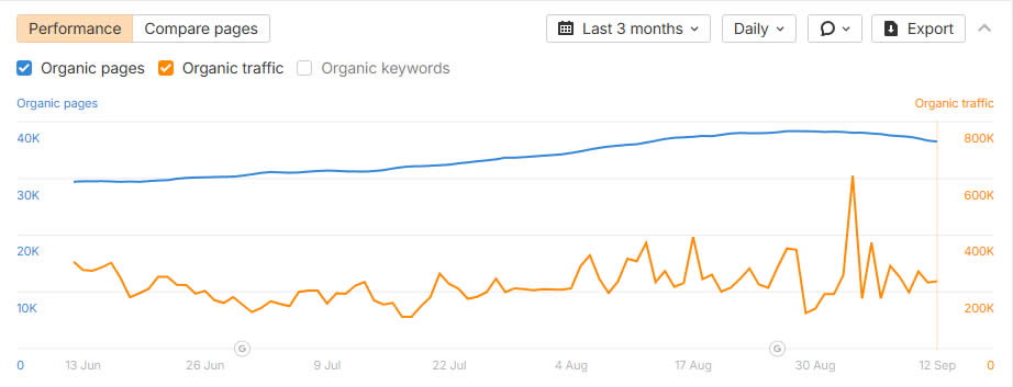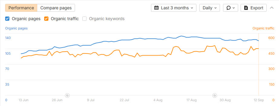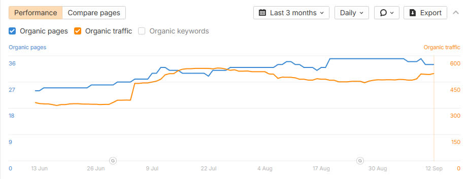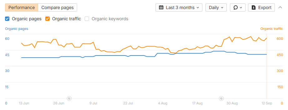 - Share de domínios com tráfego orgânico >1k/mês: 80%